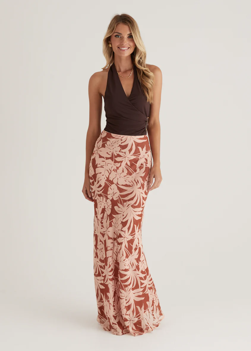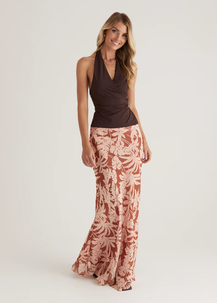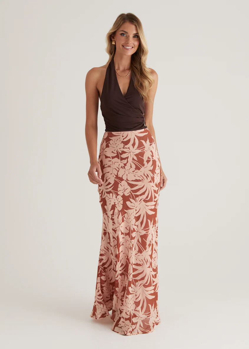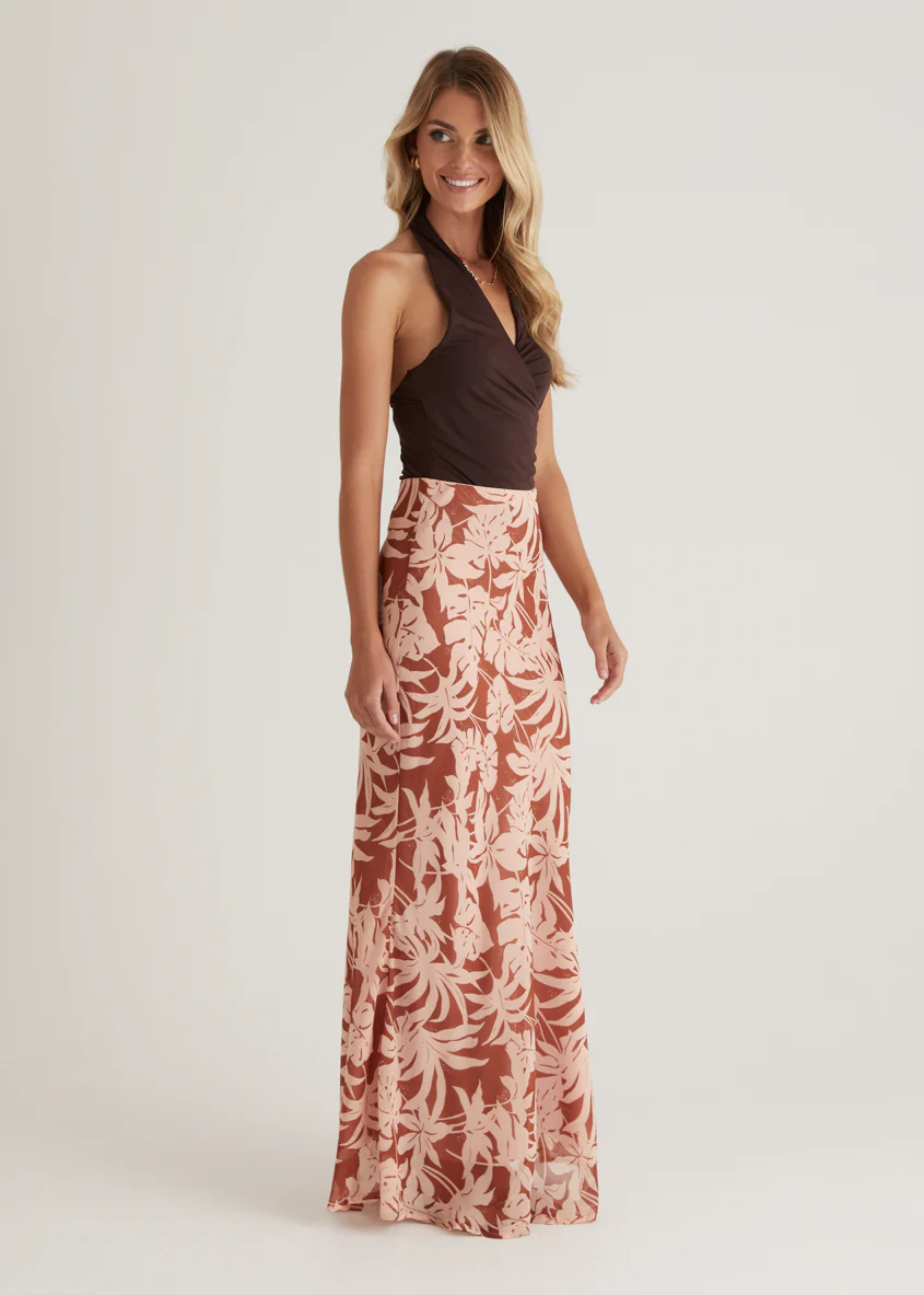 Eyso Mesh Maxi Skirt - Choc Flowers