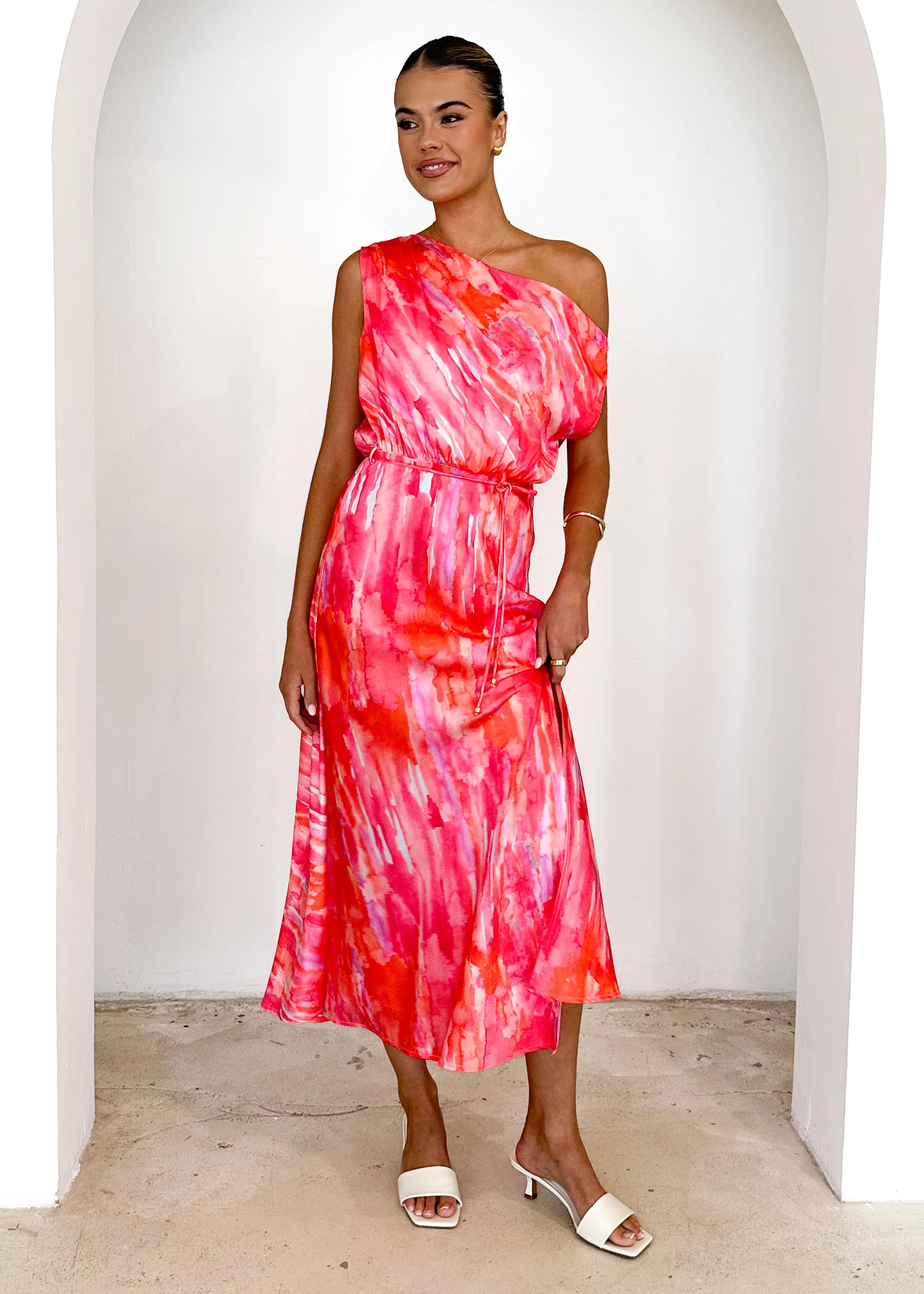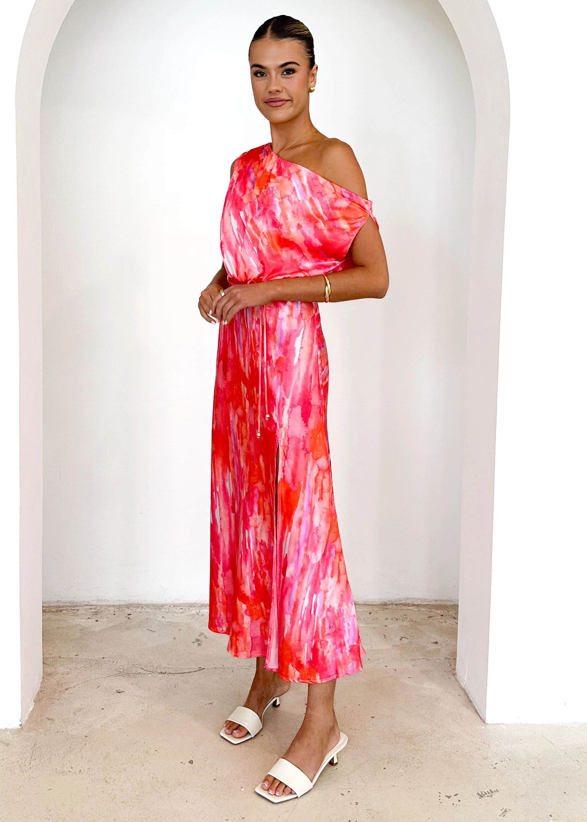 Vivian One Shoulder Maxi Dress - Pink Splash
