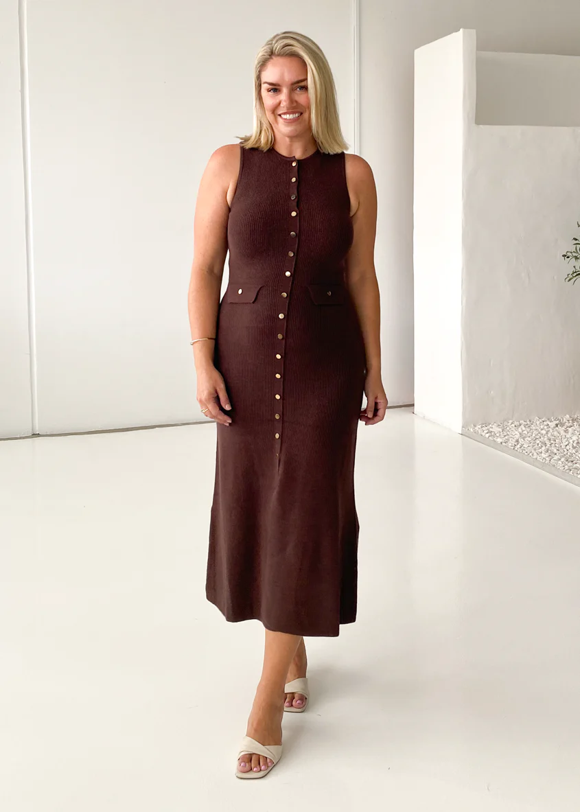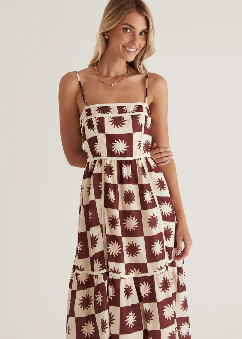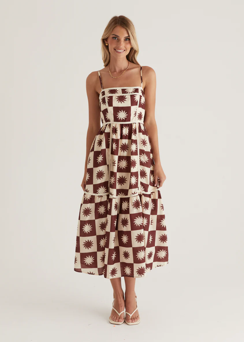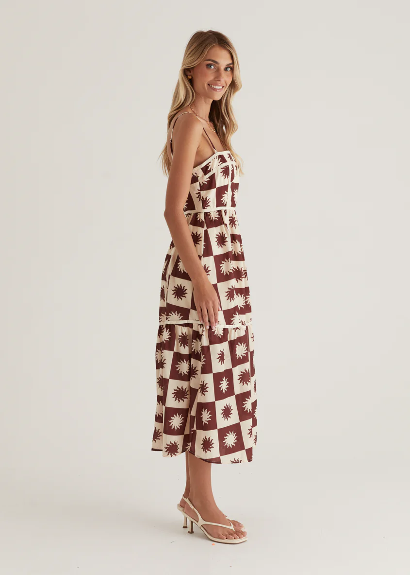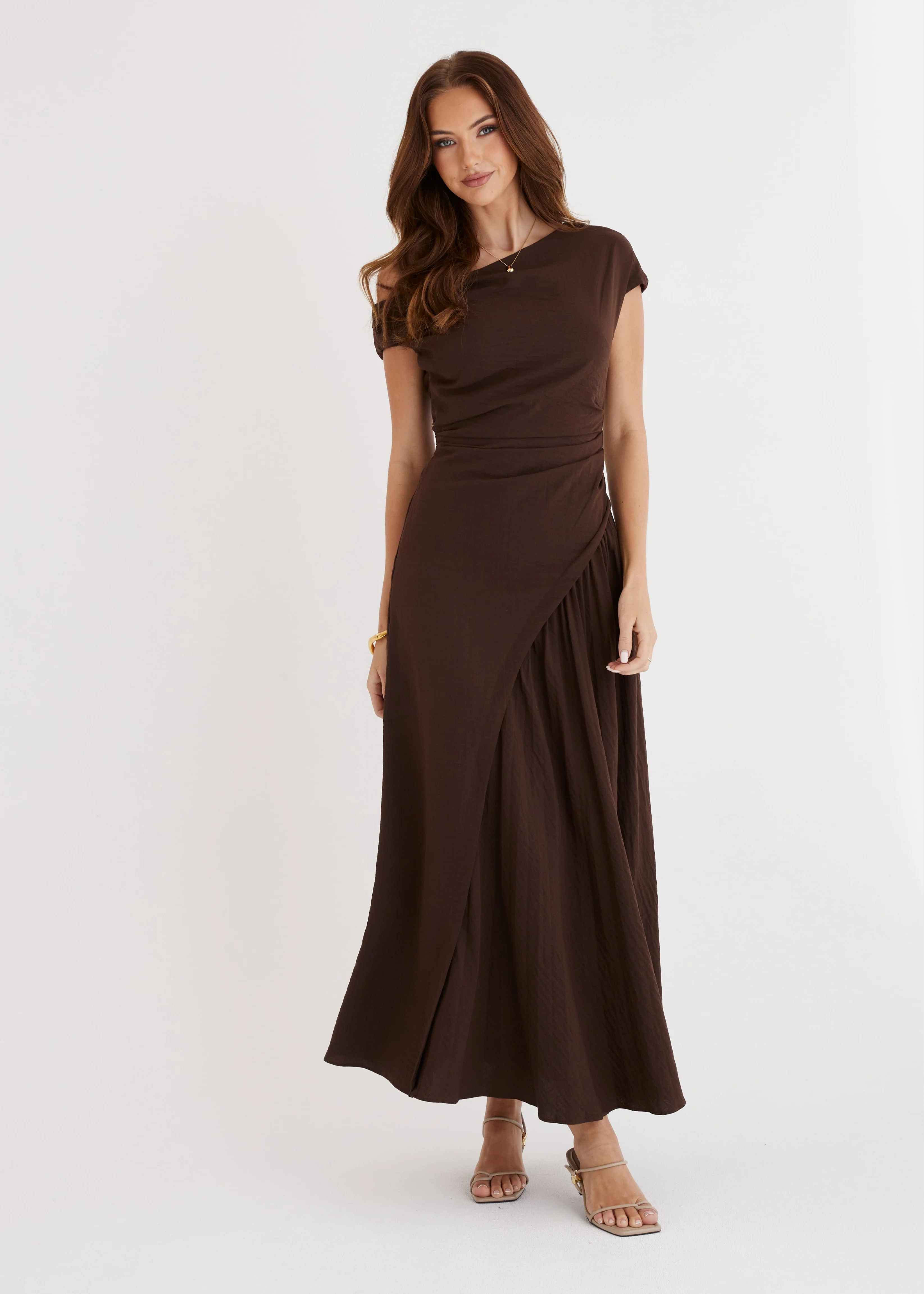 Tropicali Drop Shoulder Maxi Dress - Chocolate