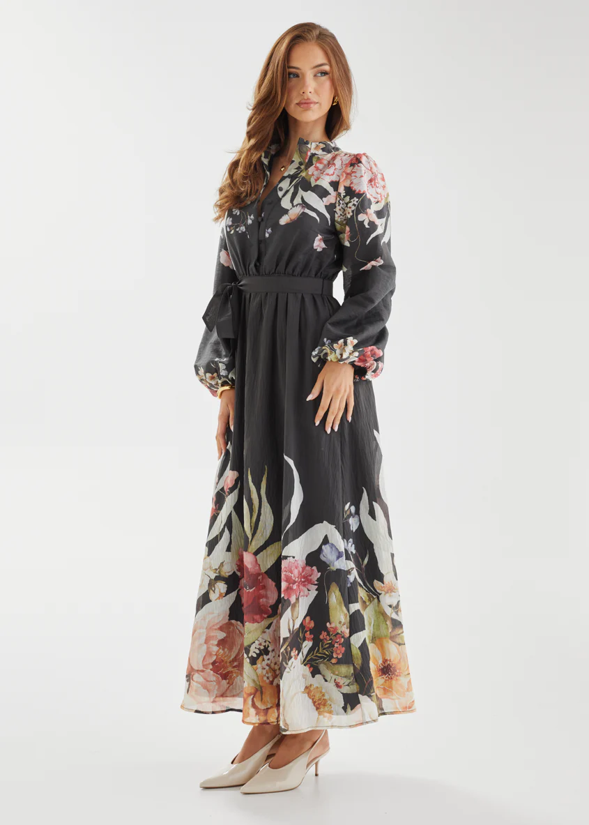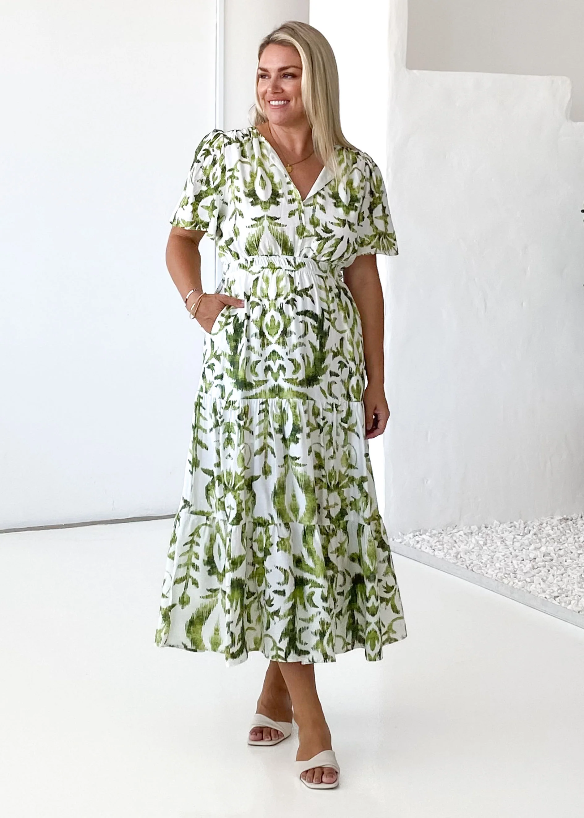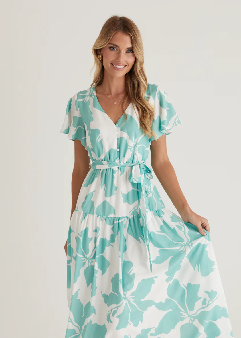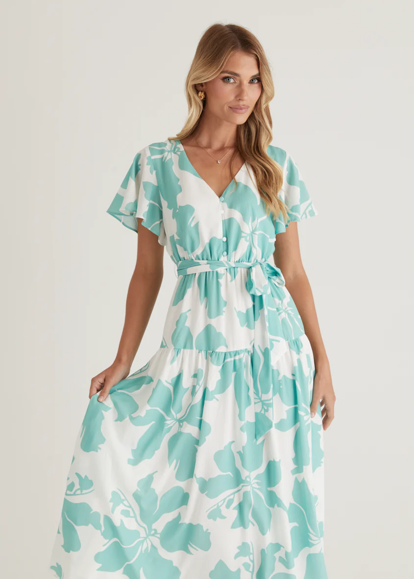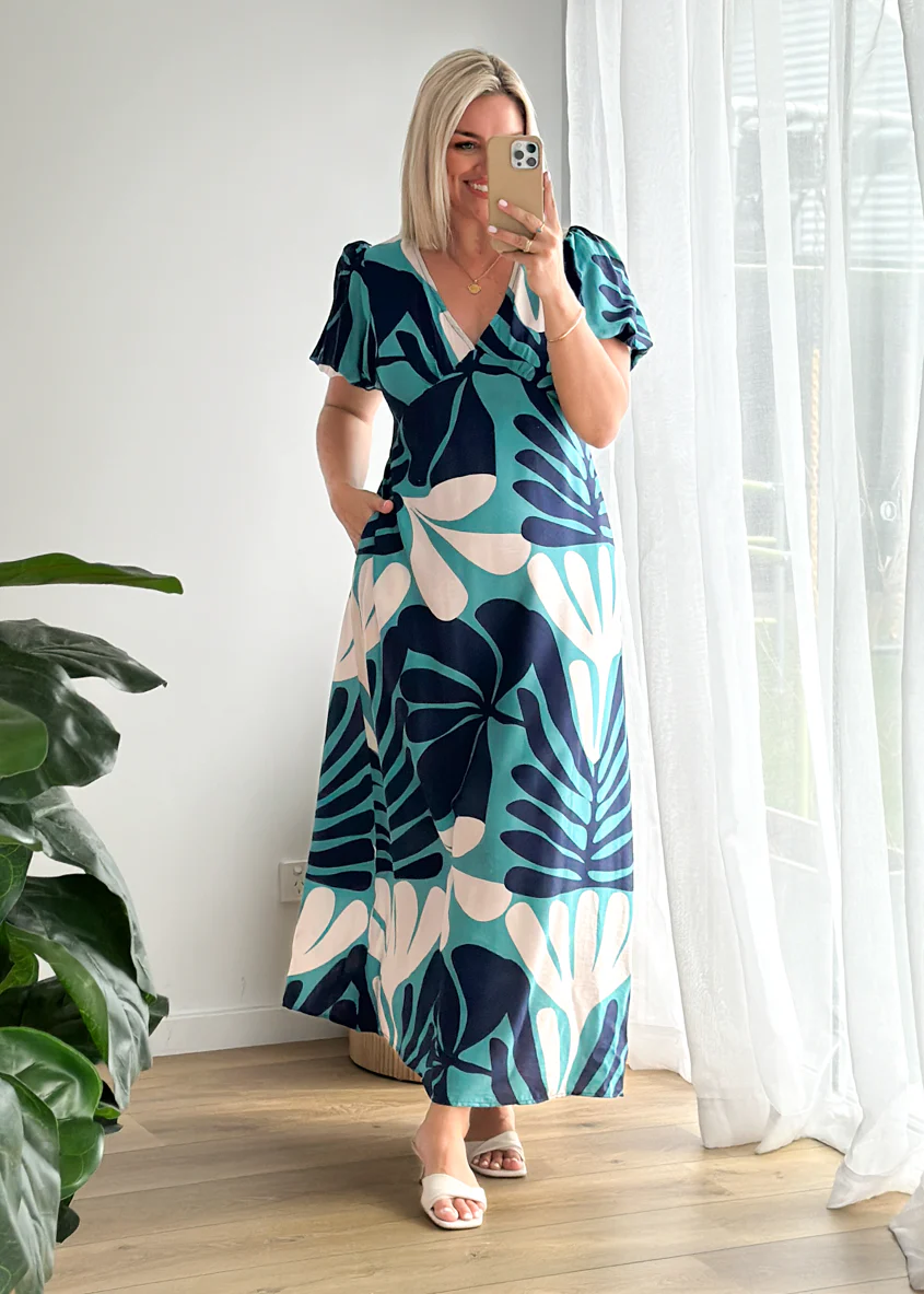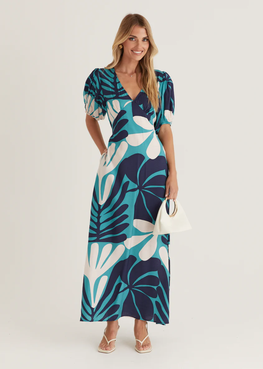 Tropicali Drop Shoulder Maxi Dress - Chocolate