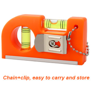 - 【Facile da Trasportare e Riporre】Il livella tascabile 2 bolle è dotato di una clip di fissaggio in metallo e una catena di metallo, che è facile da trasportare e riporre. Puoi metterlo nella tasca dei tuoi vestiti, o appenderlo a una cintura o ad un portachiavi e usarlo più convenientemente.