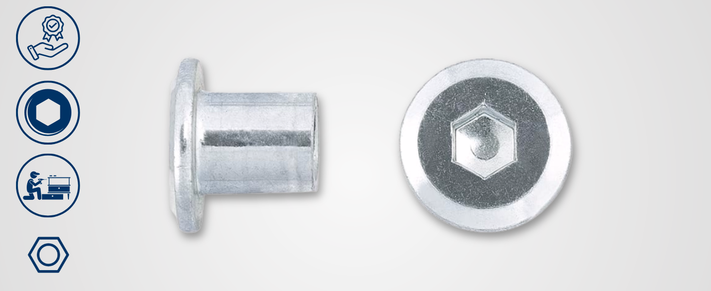 - Applicazioni versatili - Il dado a flangia trova numerosi usi, tra cui il montaggio di gambe di tavoli e sedie, il collegamento di pannelli laterali di armadi e in costruzioni che richiedono una finitura estetica.