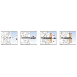 - Diametro punta: 10 mm; profondità minima del foro: 70 mm; lunghezza tassello: 50 mm