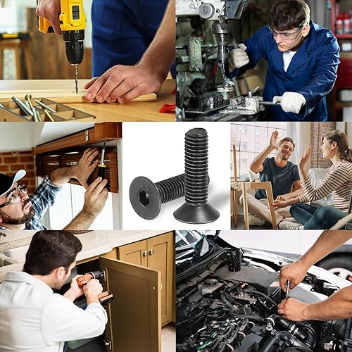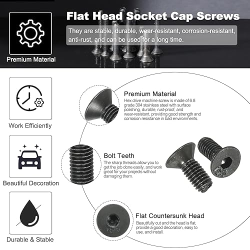 Viti a Testa Svasata Piatta M3 x 8 Mm, 100Pz Bulloni a Testa Svasata Piatta Acciaio Carbonio Medio, Viti Macchine Esagono Incassato, Filettatura Completa, Grado Ossido Nero 10.9
