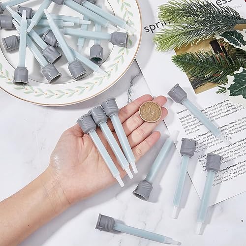 SUPERFINDINGS 30pz Punte per Ugelli Miscelatori per Colla 10:1 Epossidica In Plastica Arancione Tubo di Miscelazione per Colla AB per Pistola Adesiva Ugello per Miscelazione Resina