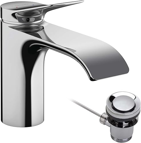 hansgrohe Rubinetto per lavabo Vivenis, rubinetto da bagno con beccuccio altezza 80 mm, con asta di trazione, rubinetto da bagno a risparmio idrico, cromato, autoportante