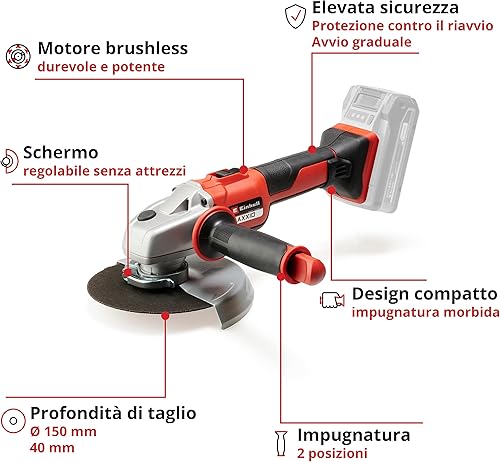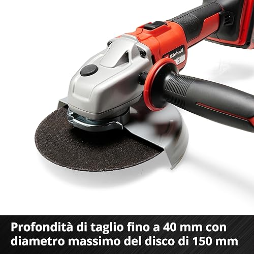 Einhell Smerigliatrice angolare a batteria AXXIO 18/150 Power X-Change (18 V, 150 mm diametro disco, 40 mm profondità taglio, Brushless, soft start, con disco, senza batteria)