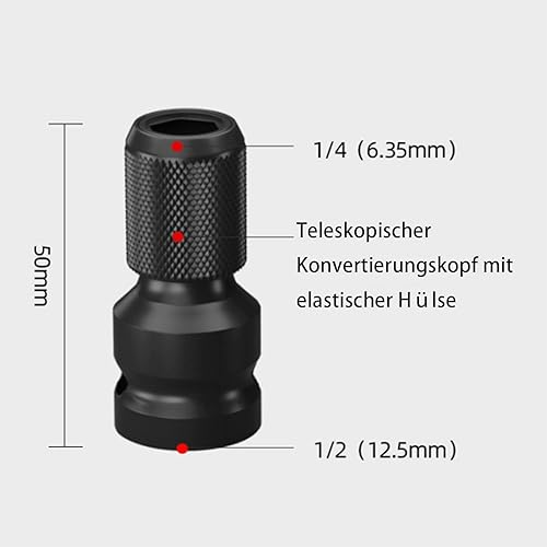 2 Pezzi Adattatore per Bussola, Adattatori Attacco da Quadrello da 1/2' Esagonale da 1/4' Sgancio Rapido, Adattatori Bit da 1/2 Pollici per Avvitatore a Percussione, Punte per Chiave a Cricchetto