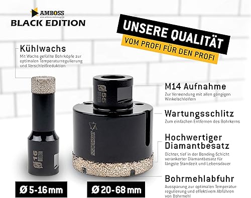 Amboss – Corona diamantata 5 mm (M14) per smerigliatrice angolare, adatta per gres porcellanato, piastrelle dure, granito ecc.