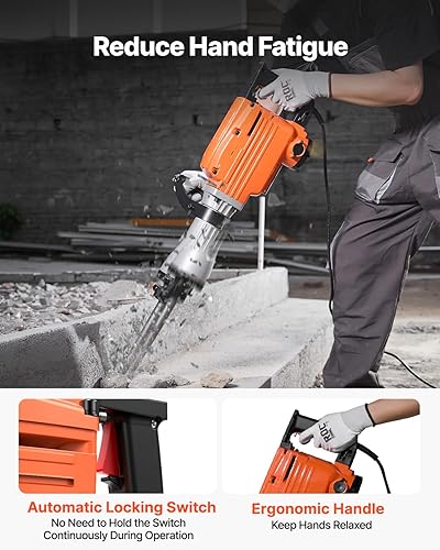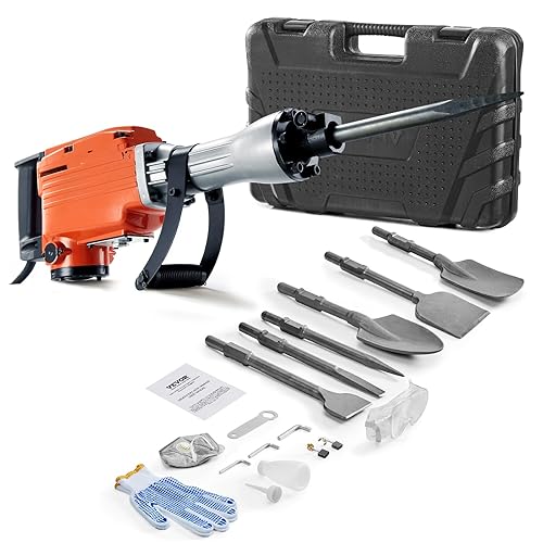 VEVOR Martello Demolitore per Calcestruzzo 2200W 6 Punte a Scalpello per 1400BPM, Kit di Martello Demolitore Elettrico 220V per Lavorazione su Cemento Mattoni Piastrelle Demolizione per Muro 66J 2200W