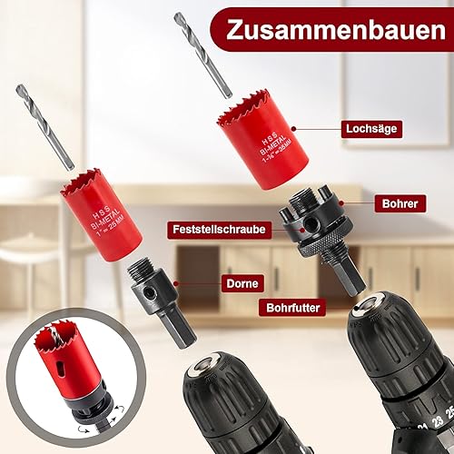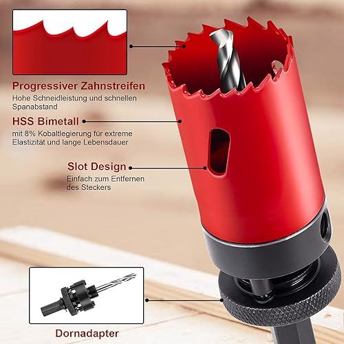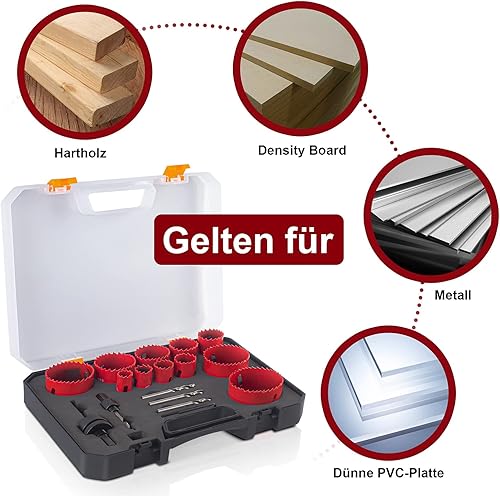 Sega a Tazza Bi-metallica, Meinraum 19 PCS Frese a Tazza per Metallo con 11 Lame da 19-68mm, Seghe a Tazza per Alluminio, Legno, Pannelli in PVC, Pannelli in Plastica e Metallo