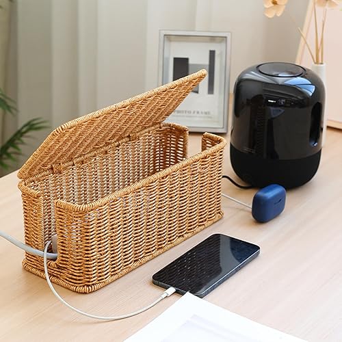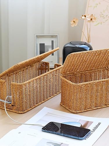 Scatola di Gestione dei Cavi in Imitazione Rattan, Scatola Rustica per l'organizzazione dei Cavi Intrecciati con Coperchio, Scatola per multipresa per Cavi per (A2)