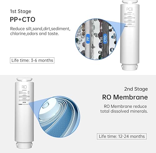 Geekpure Set di filtri di ricambio per sistema di osmosi inversa senza serbatoio 800 GPD