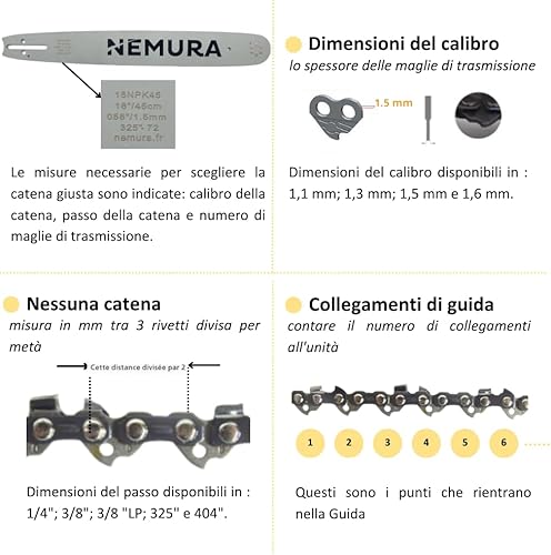 Guida Nemura da 33 cm e set di 3 catene per motoseghe - 47 Maglie di trasmissione - Passo 3/8 LP - Calibro 0.50 (1,3 mm) - Ricambi di qualità professionale per utensili - Marca francese