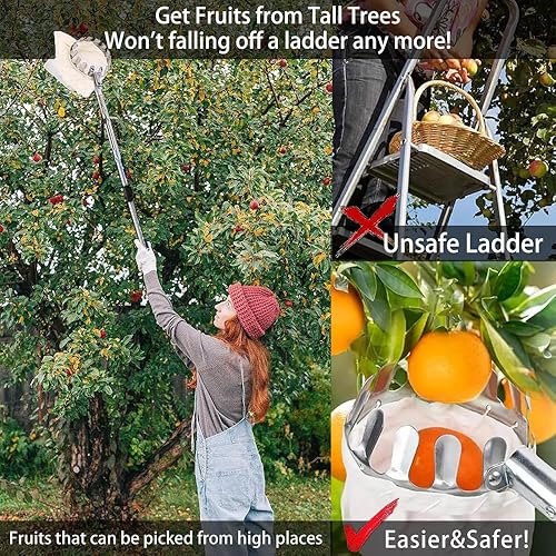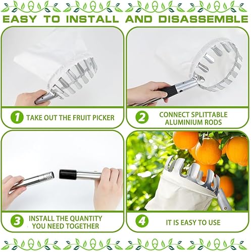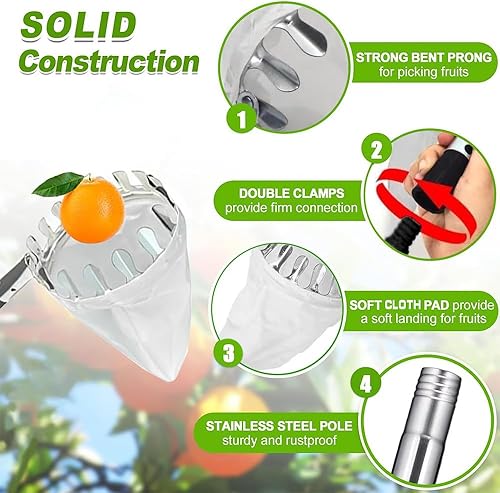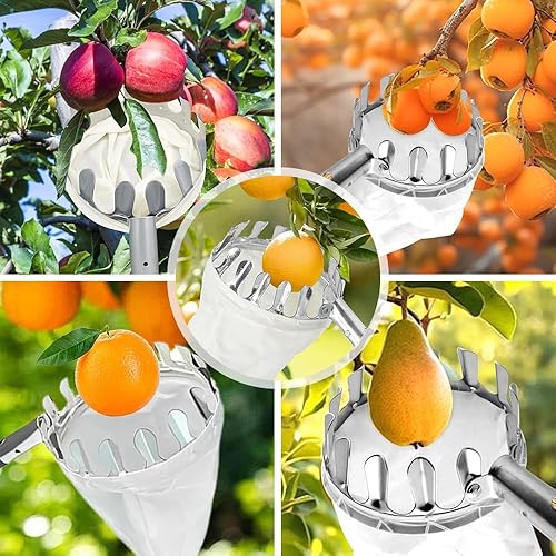 Raccogli Frutta da Albero,4M Raccogli Frutta Telescopico,Raccoglitore di Frutta Fatto in Acciaio Inossidabile ,Con Sacchetto di Cotone,Adatto per Mele,Agrumi e Ciliegie
