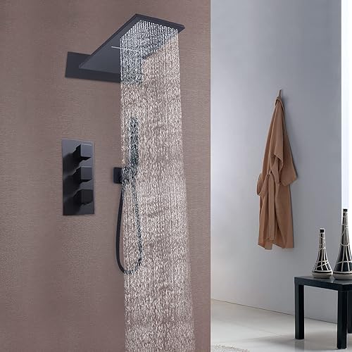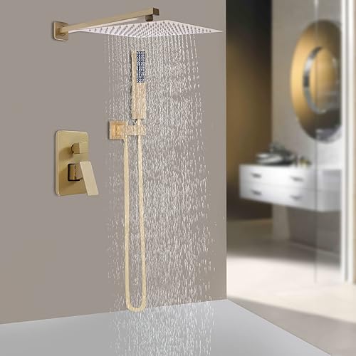 Set doccia da incasso in oro spazzolato, 12 pollici, soffione doccia a pioggia con soffione doccia, 2 funzioni in ottone per vasca da bagno