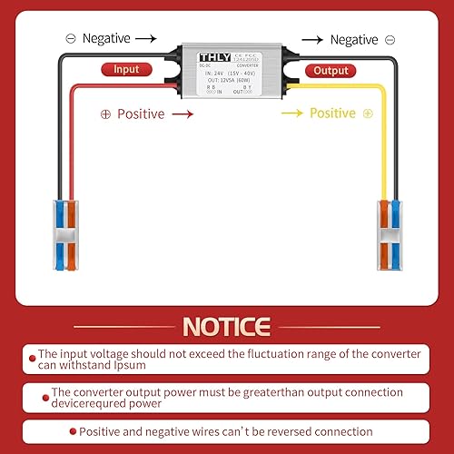 Trasformatore 24 12 Volt, Convertitore 24V a 12V 5A 60W Converter di Connettori Elettrici a Cablaggio Rapido, Regolatore di Tensione(Accetta ingressi DC15-40V)