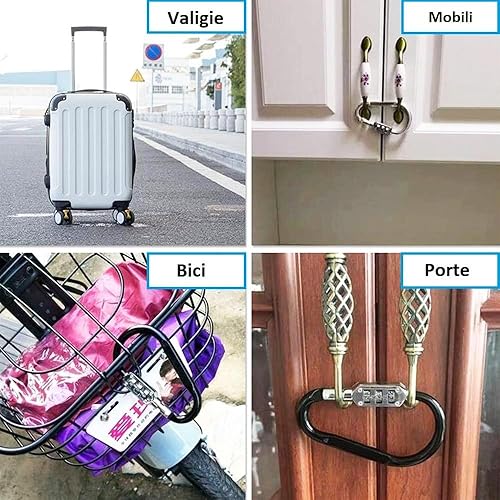 Moschettone con Combinazione di Sicurezza a 3 Cifre, misura 6x10,5 cm, Lucchetto a codice a forma di, Adatto per Bici, Valigie, Zaini da Viaggio -001F (Blu)