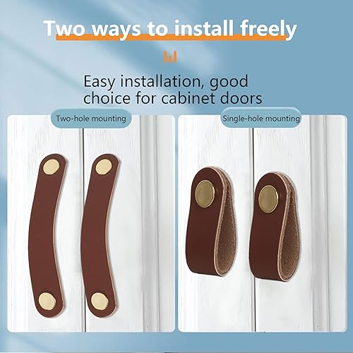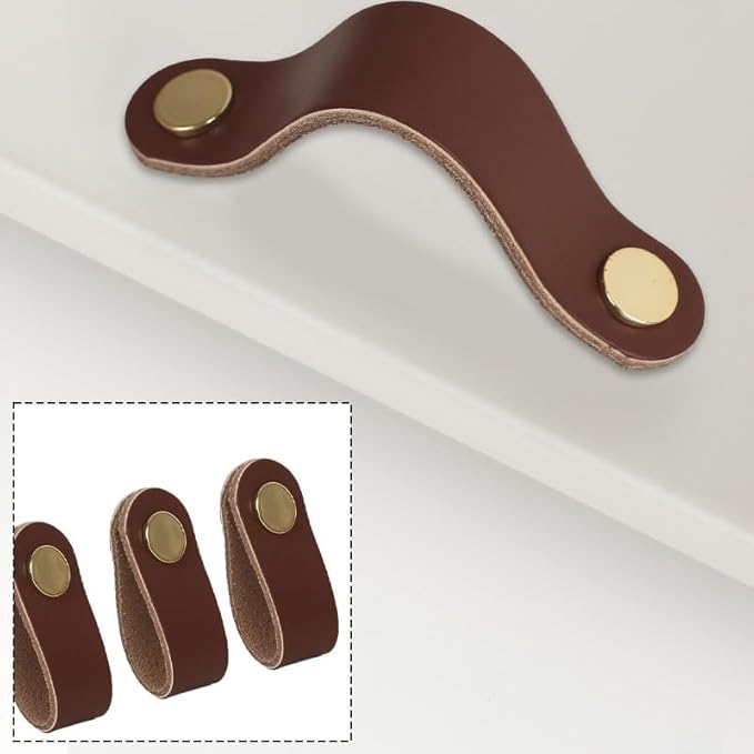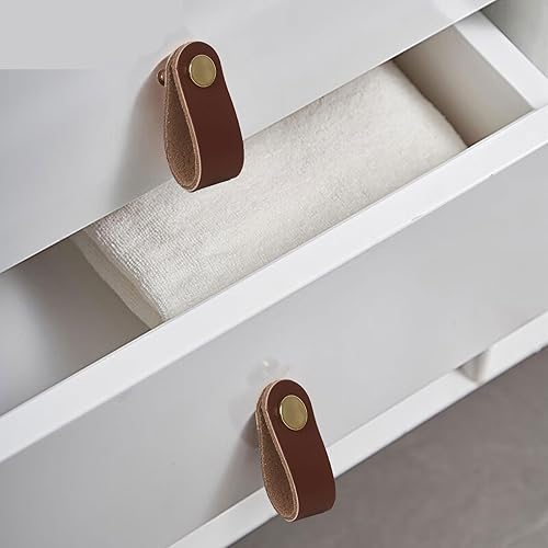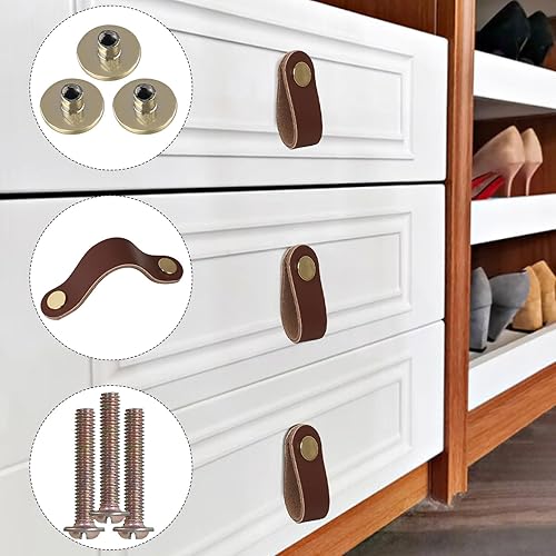 Maniglie in Pelle per Mobili, 6 Pz Maniglie Mobili in Pelle, Maniglie per Armadi, Cinghie in Pelle, Maniglie per Mobili e Pomelli per Armadi, per Cassetti, Mobili, Armadi da Cucina