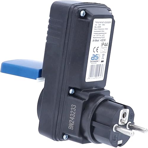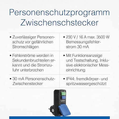 as - Schwabe Connettore adattatore di protezione personale 30 mA — contatto di sicurezza 230 V, 16 A max. 3500 W — spina di protezione individuale per la protezione da scosse elettriche
