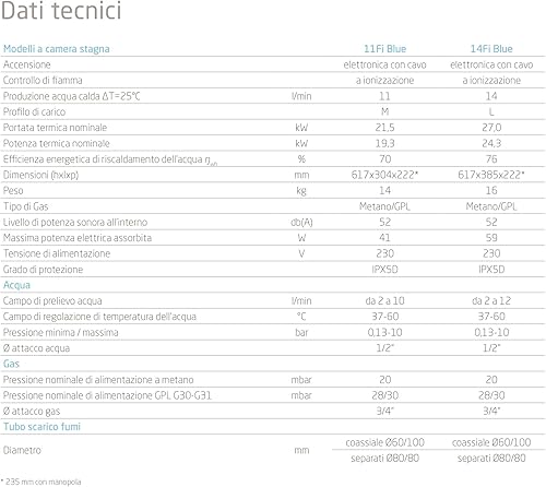 Scaldabagno a gas Baxi Acquaprojet 11 Fi Blue a camera stagna Low Nox ErP Gpl