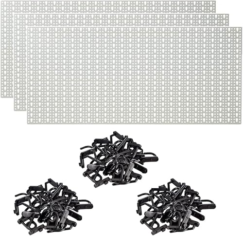 Pannello Portautensili 980x460mm in Lamiera Verniciata - Kit Ganci Incluso - Pannello Porta Attrezzi da Parete per Organizzazione Utensili - Parete Attrezzata Officina (1, Bianco/Avorio)
