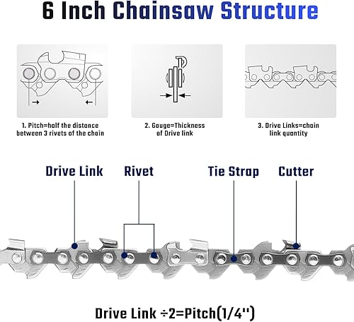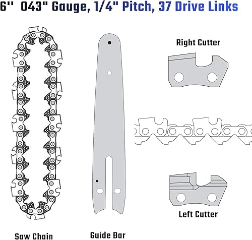 Shinkuro 5pz catena per motosega, catena per sega, ricambio per motoseghe portatili senza fili con tutte le mini motoseghe da 6 pollici, lama per motosega in acciaio per taglio (la guida 1pc include)