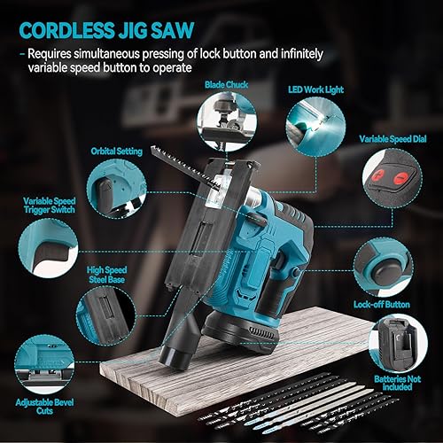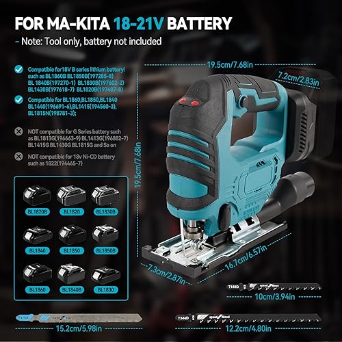 Seghetto alternativo senza fili compatibile con batteria Makita 18 V, utensile da taglio senza spazzole da 500 W, 3300 giri/min, tagli smussati a 45° con lame seghetto alternativo per taglio dritto