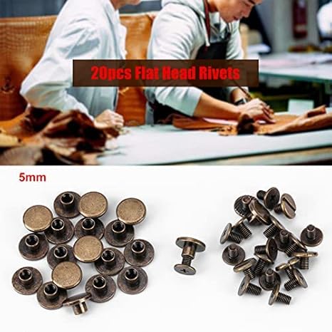 20pcs Viti a Testa Piatta Filettate, Rivetto in Pelle Rivetti per cuoio per Fai Da Te Decorazioni 8mm