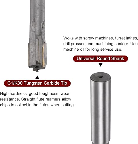 sourcing map Mandrino Alesatore 12.7mm H7 C1/K30 Punta In Carburo Precisione Flauti Diritti Gambo Tondo Tornio Macchina Fresatrice