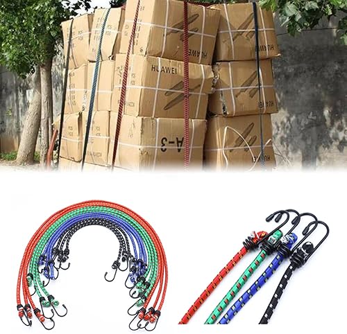 Extra forte, 4 lunghezze, estensore per bagagli, corda di gomma, cinghie di tensione con gancio, cinghia di fissaggio estensibile, per trasporto, fissaggio del carico (12 pezzi)