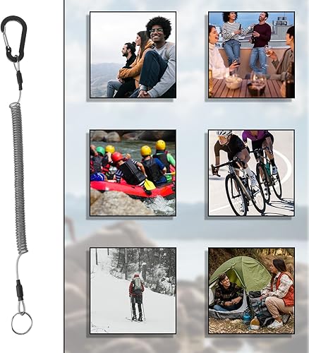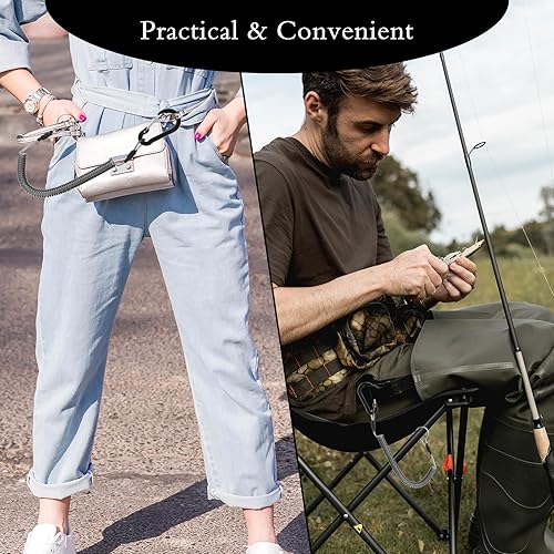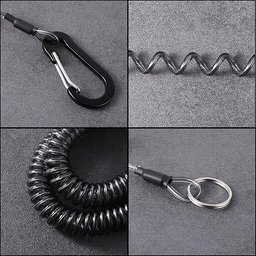 3 portachiavi a spirale, per esterni, cavo a spirale elastico, corda di sicurezza retrattile, corda di supporto per canna da pesca, accessori con clip in lega di alluminio per pinze (nero)