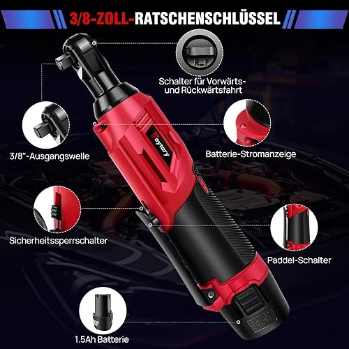 Set di chiavi a cricchetto elettriche, batteria da 12 V, chiave a cricchetto da 3/8', con coppia di 40 nm, 0-30 oRPM con 2 batterie da 1500 mAh, 7 prese, cricchetto elettrico per mobili e auto