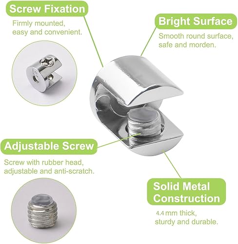 Staffa per mensola in vetro, 8 morsetti regolabili a parete in vetro cromato lucido in lega di zinco e vetro supporto supporto staffa di montaggio per vetro spesso 6-10 mm