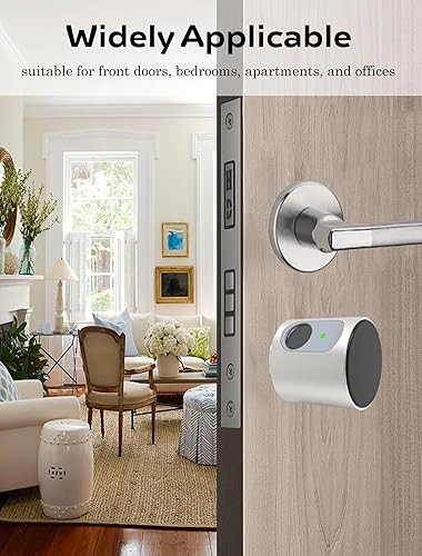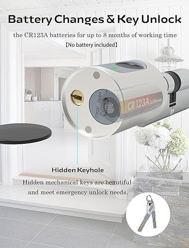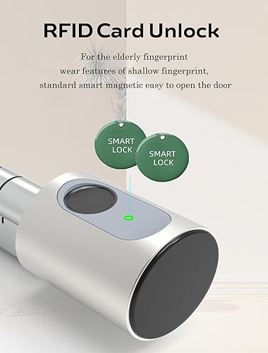 Serratura con impronte digitali – Smart Lock per porta di casa, apriporta a cilindro elettronico con impronte digitali e 2 chiavi e 2 schede RFID Tuya APP di sblocco, argento