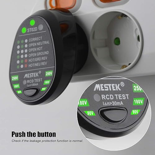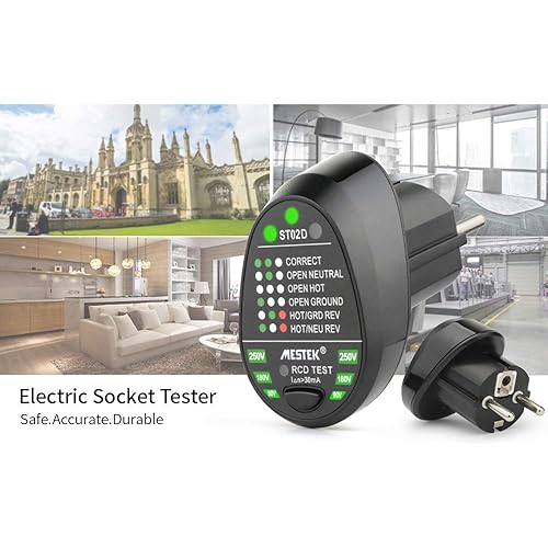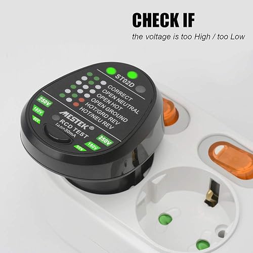 Tester di Presa,Tester per Circuiti Elettrici RCD Tester Presa Intelligente Spina Rilevatore per Polarità del Circuito di Prova del Cavo di Messa a Terra Neutro con Indicatore