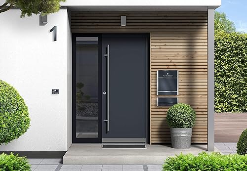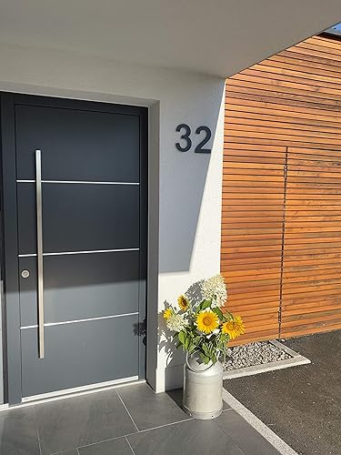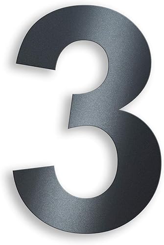 numero civico in acciaio massiccio color antracite, RAL 7016, struttura fine verniciata a polvere, scritta Arial, altezza 20 cm, numero 3
