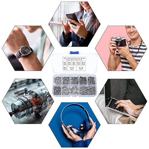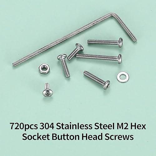 720 Pz Kit di Bulloni e Dadi, M2 Set di Viti a Testa Cilindrica con Esagono Incassato e Dadi e Rondelle, Vite a Testa Esagonale Incassato in Acciaio Inox, Bulloni Viti a Testa Bottone Brugola, argento
