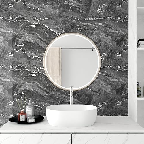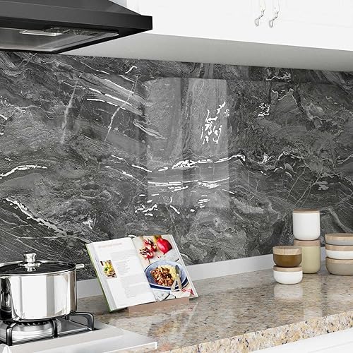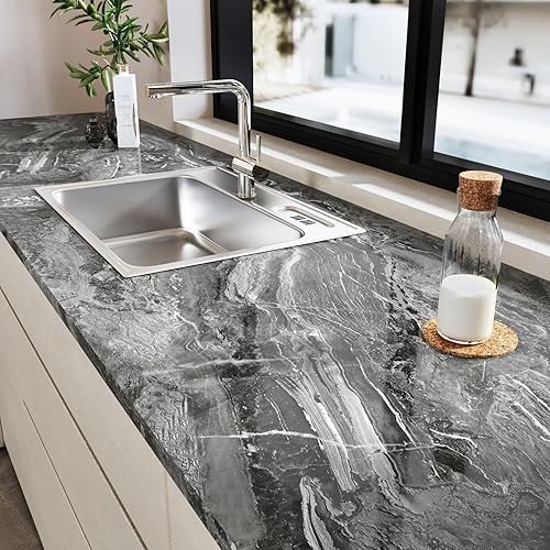 HotDecor Carta Adesiva Effetto Marmo Per Mobili Armadio Carta Da Parati Adesiva Argentata e Grigia Rivestimento Adesivo Per Mobili Piano Di Lavoro Cucina Carta Da Parati Moderna Lavabile 60cm x 300cm