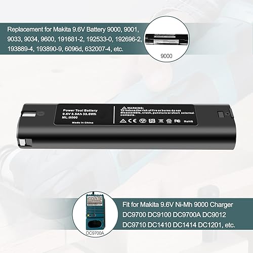 3500mAh 9.6V Ni-Mh Batteria Sostituzione per Makita 9.6V Batteria 9000 9034 9600 191681-2 192533-0 Sostituzione per Makita 9.6V Ni-Mh Batteria