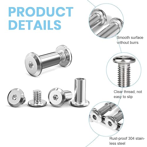 Viti per Mobili, Viti di Giunzione, Viti in Acciaio Inox, M6 Viti di Collegamento con Manicotto, Vite Connettore per Armadio, Rivetti a Vite Ferramenta per Mobili, 8mm Manicotto Viti Collegare, 10Pcs