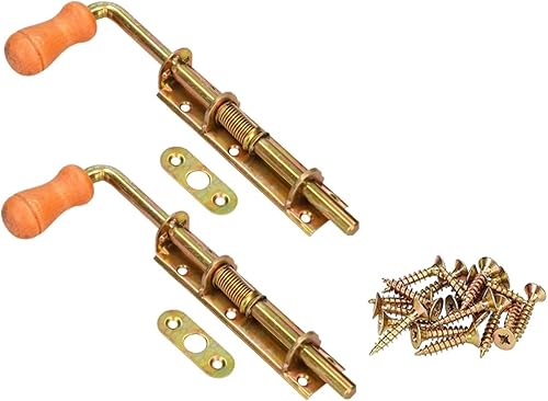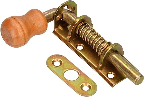 KOTARBAU® - Set di 2 chiavistelli a molla, per porta, zincati, antiruggine, maniglia in legno, con bullone della porta a molla resistente alle intemperie, 150 mm