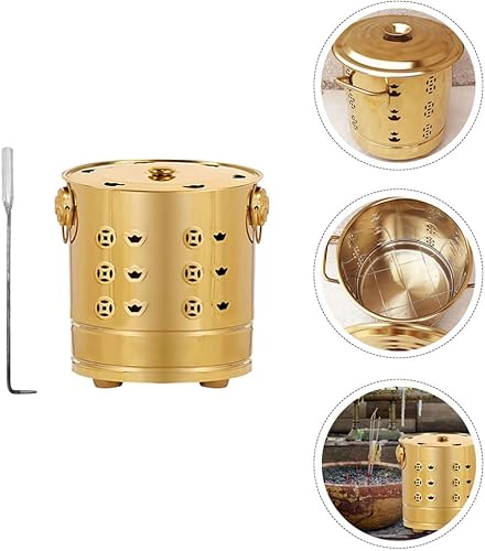 Angoily Ciotola Sbavante Inceneritori Inceneritore Per Carta in Burn Barile: Can Fire Pit con Gancio Appeso Burning Thins Adorazione Burning Secchio D' oro Barile Barile Inceneritore