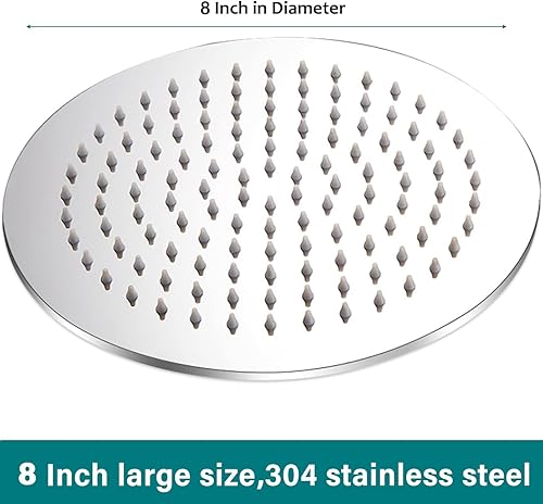 Soffione Doccia a Pioggia in Acciaio Inox, Docce Fisso Piazza 20 CM, Soffione Doccia Anticalcare, Docce Fisse Alta Pressione da 8 Pollici, Testa Doccia Regolabile 360°