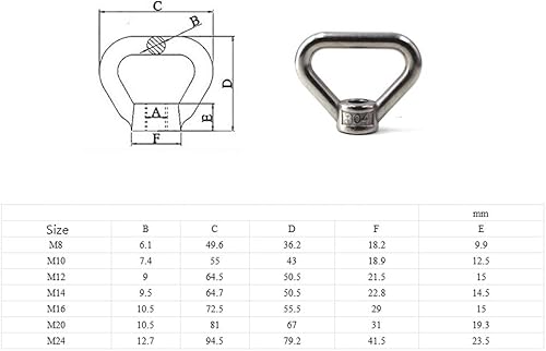 M20 - Dado a occhiello per sollevamento a forma di triangolo, in acciaio inox 304, confezione da 1