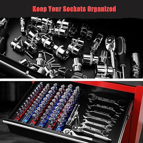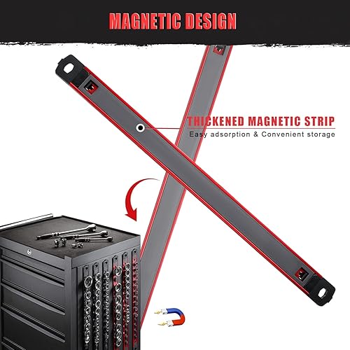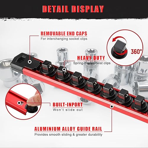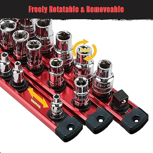 ACEBON 3 pezzi set di porta bussole magnetiche con 36 Clips, piste in lega di alluminio, Clip da 1/2', organizer porta utensili da parete