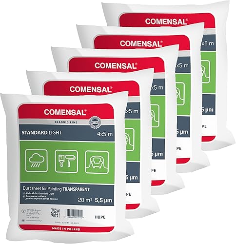 Set da 5 Teli per Imbiancare 5,5 μm - Telo Protettivo per Pittura - Pellicola di mascheratura - Teli Plastica per Coprire Telo - Made in EU - 4x5m
