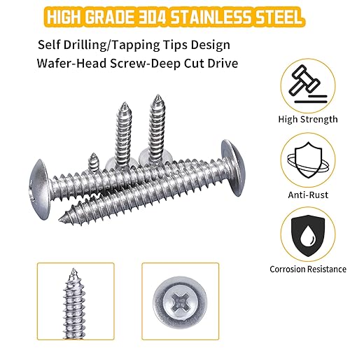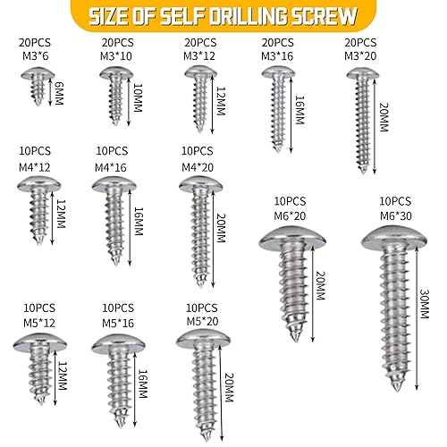 180 Pcs M3 M4 M5 M6 Assortite Viti Phillips Autofilettanti,Assortimento Viti Tonda Lamiera, Kit Viti Bombato a Croce Legno Acciaio Inox,Set Viti Incrociata Fissaggio Testa Piatta con Rondelle