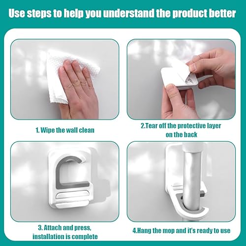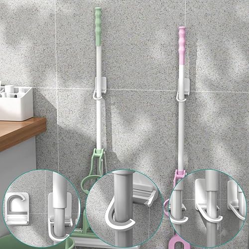 4 Pezzi Porta Scope Parete Portascope da Muro in Portascope da Muro Adesivo Appendibile Adattocon Gancio per Cucina, Giardino, Bagno, Garage, Balcone, Ufficio