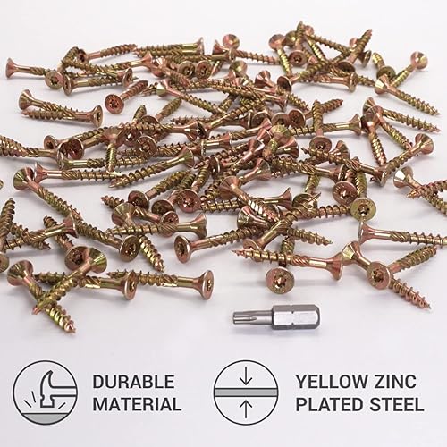 SKIR'CO (50 pezzi) universale in acciaio zincato 4,5 x 35 mm viti per legno gialle, testa svasata, testa torx, tipo 17, viti per truciolare